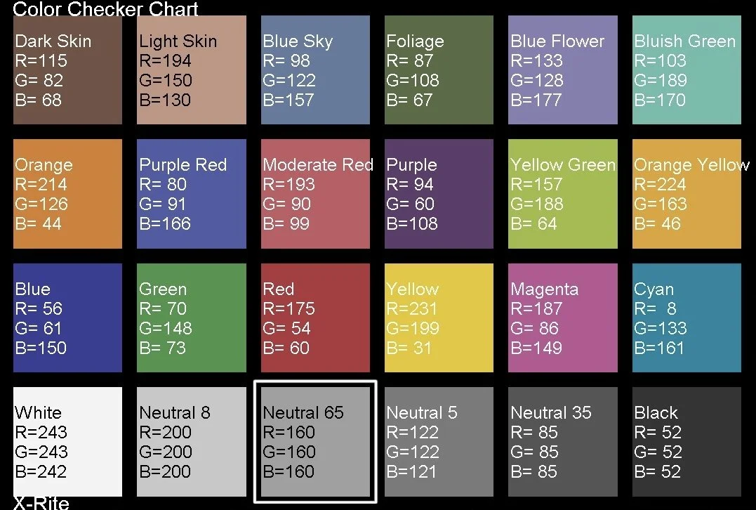 Pick a neutral grey square on ColorChecker - Neutral 65 (RGB: 160,160,160)