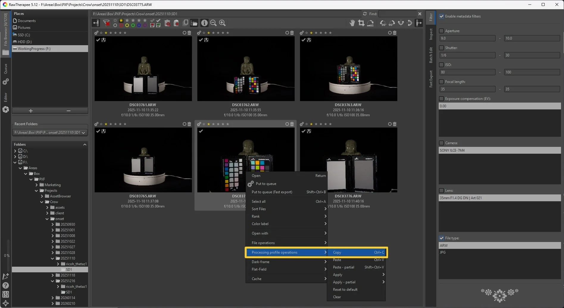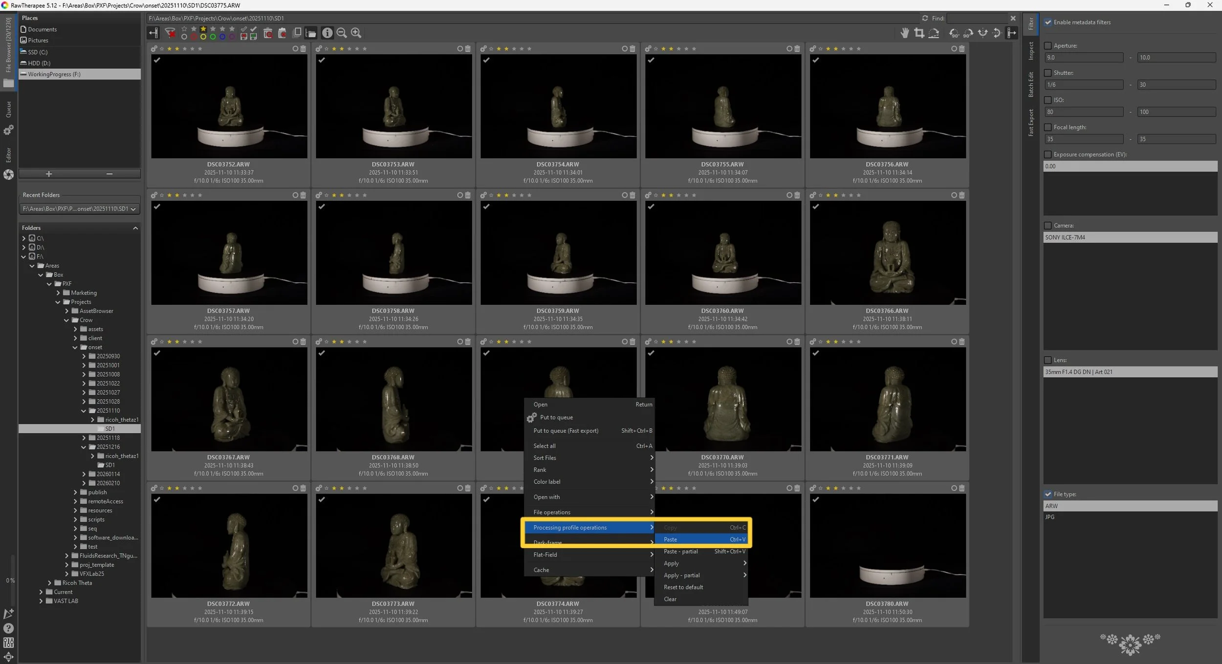 2. Select target images to apply settings→ Processing profile operations → Paste