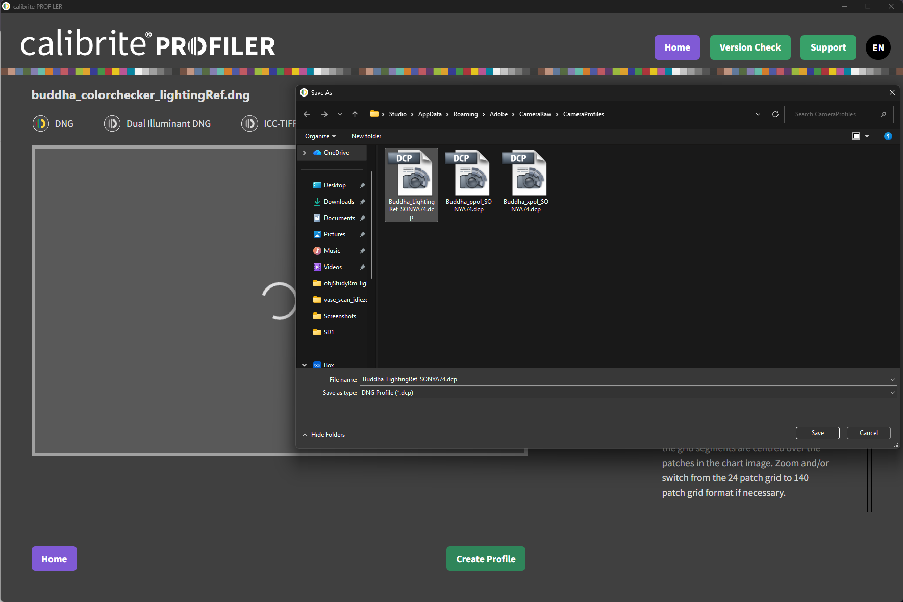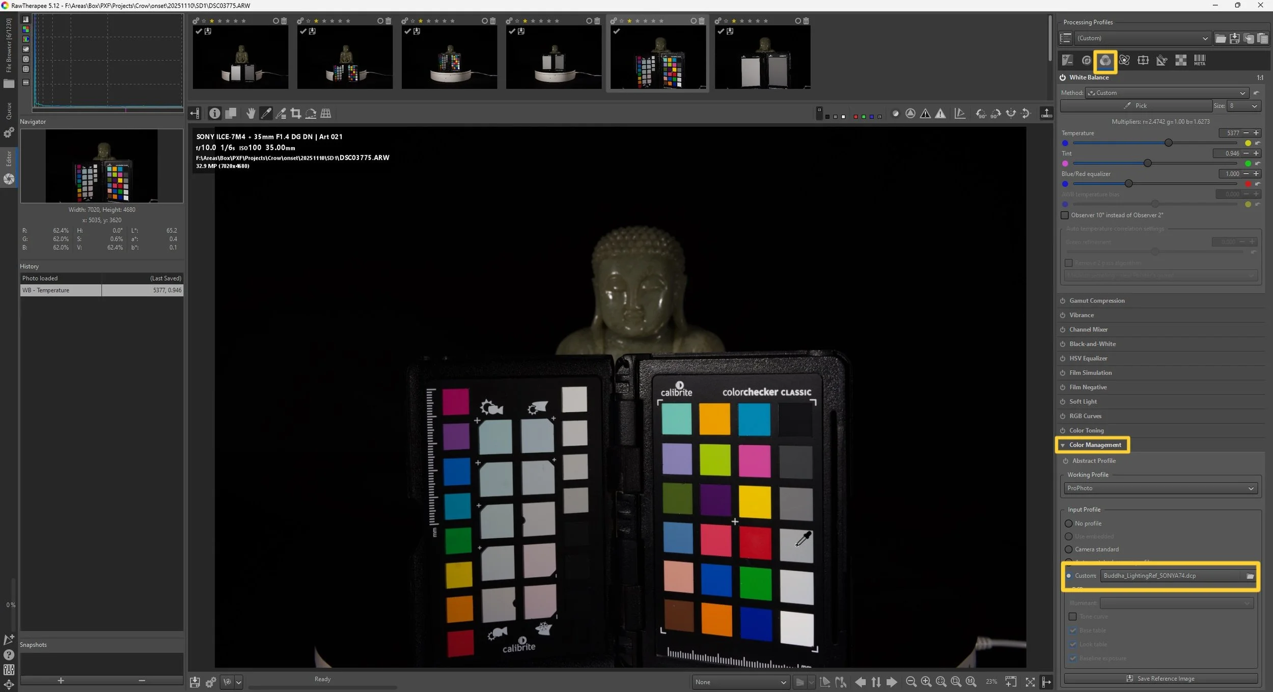 Lighting reference profile → Buddha_LightingRef_SONYA74.dcp