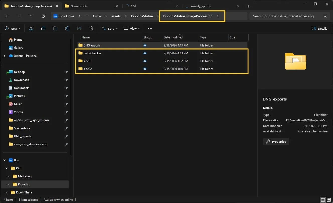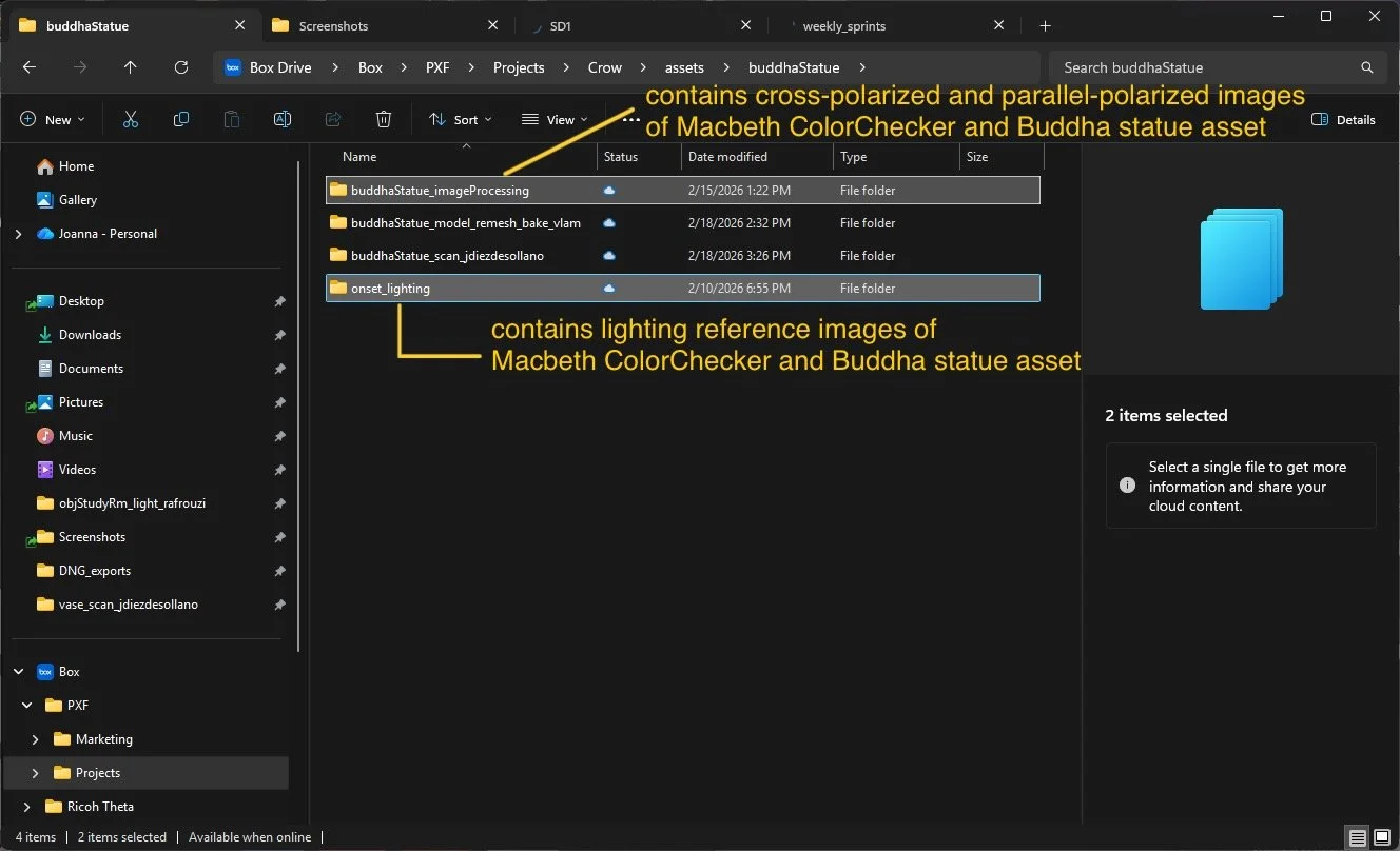 I started by downloading all the necessary software for processing the Buddha scanning session data—photos of lighting reference, cross polarized and parallel polarized photos.