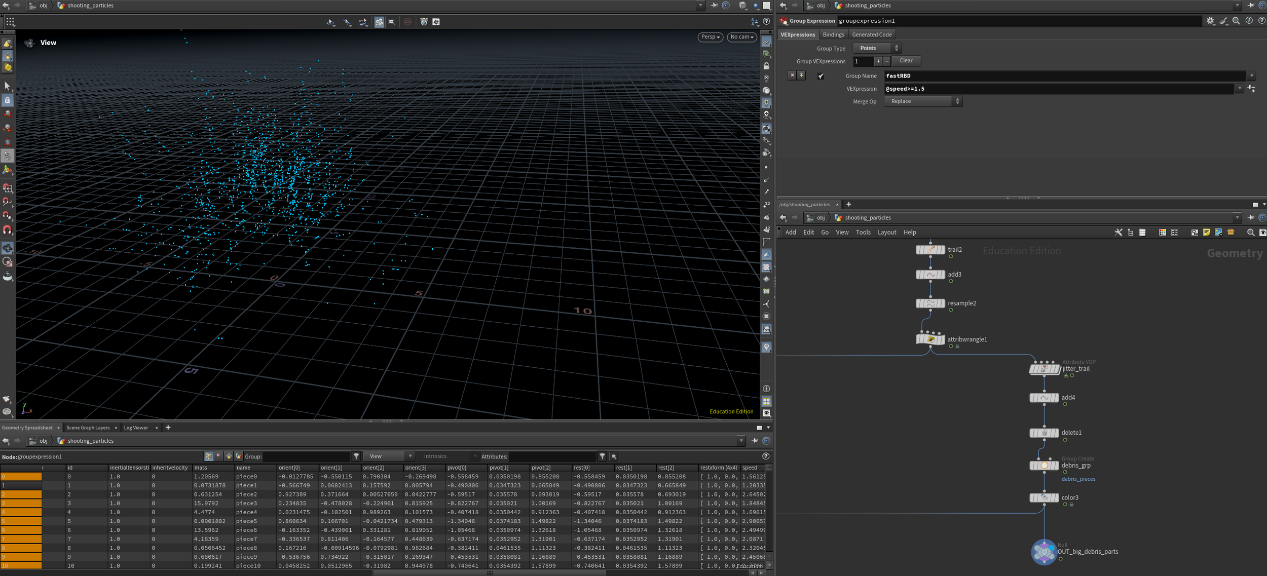 After an initial attempt the previous week using a more traditional debris emitter system, the approach to debris simulation evolved significantly this week.