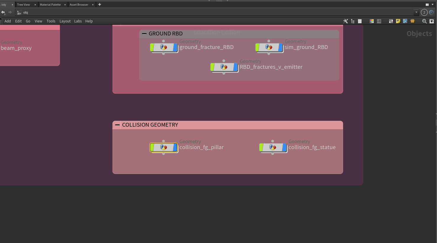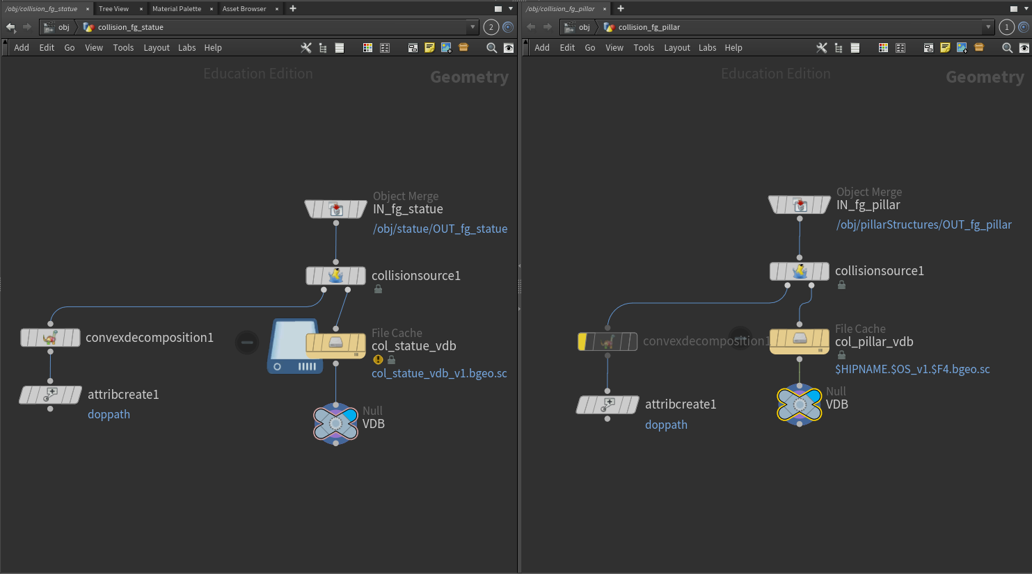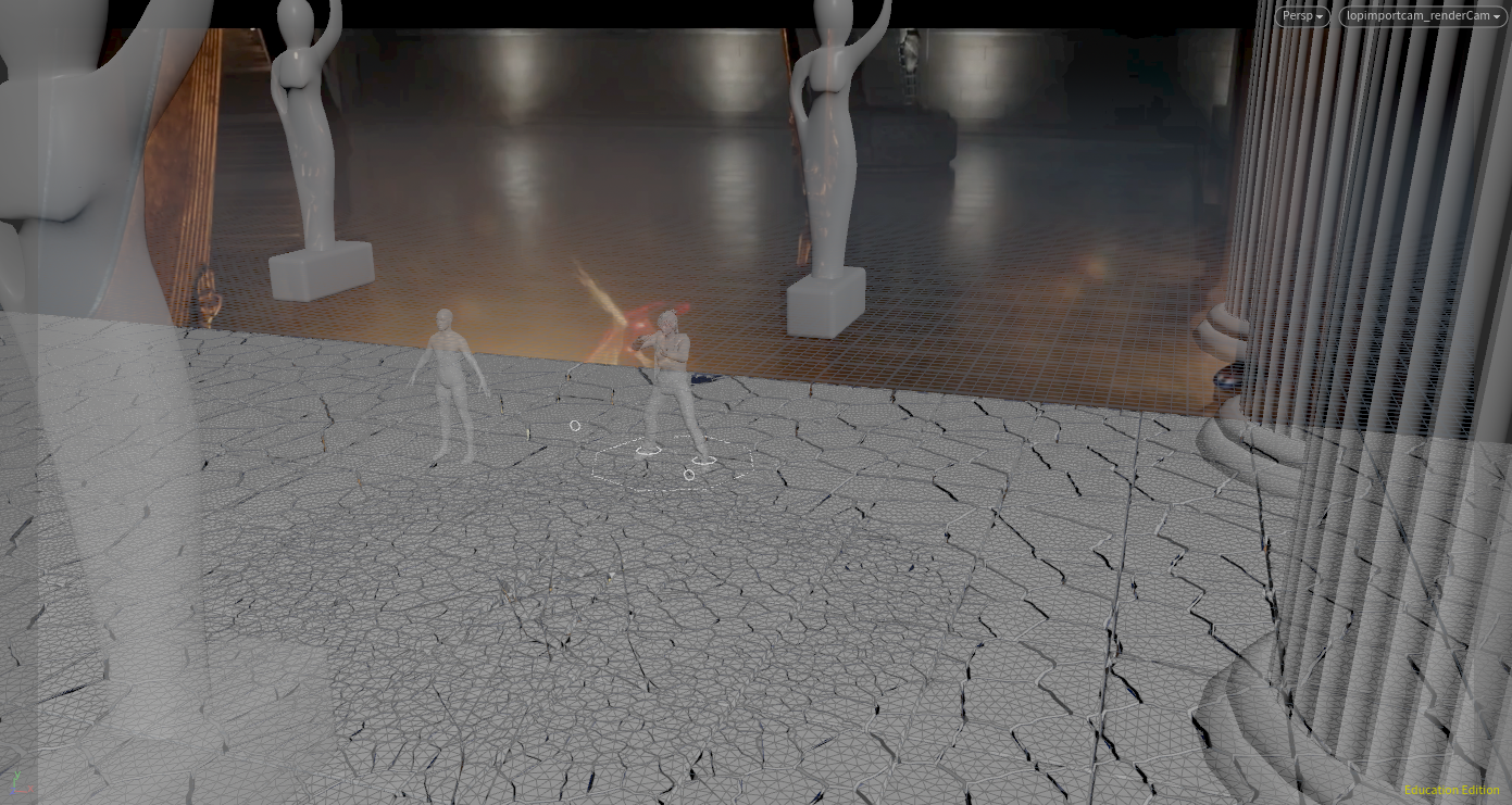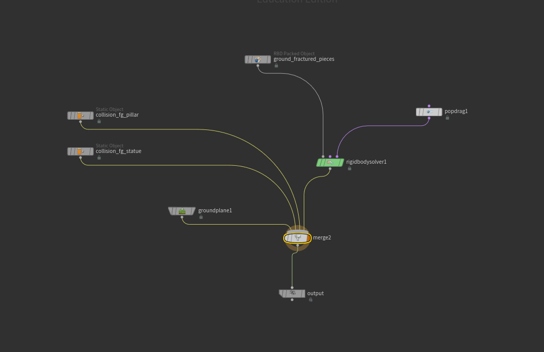 In this section, I created collisions for the foreground pillar and statue assets by simulating their interaction with the destruction elements in the short setup. Using the Static Object Collision shelf tool, I applied collision to these environment assets.